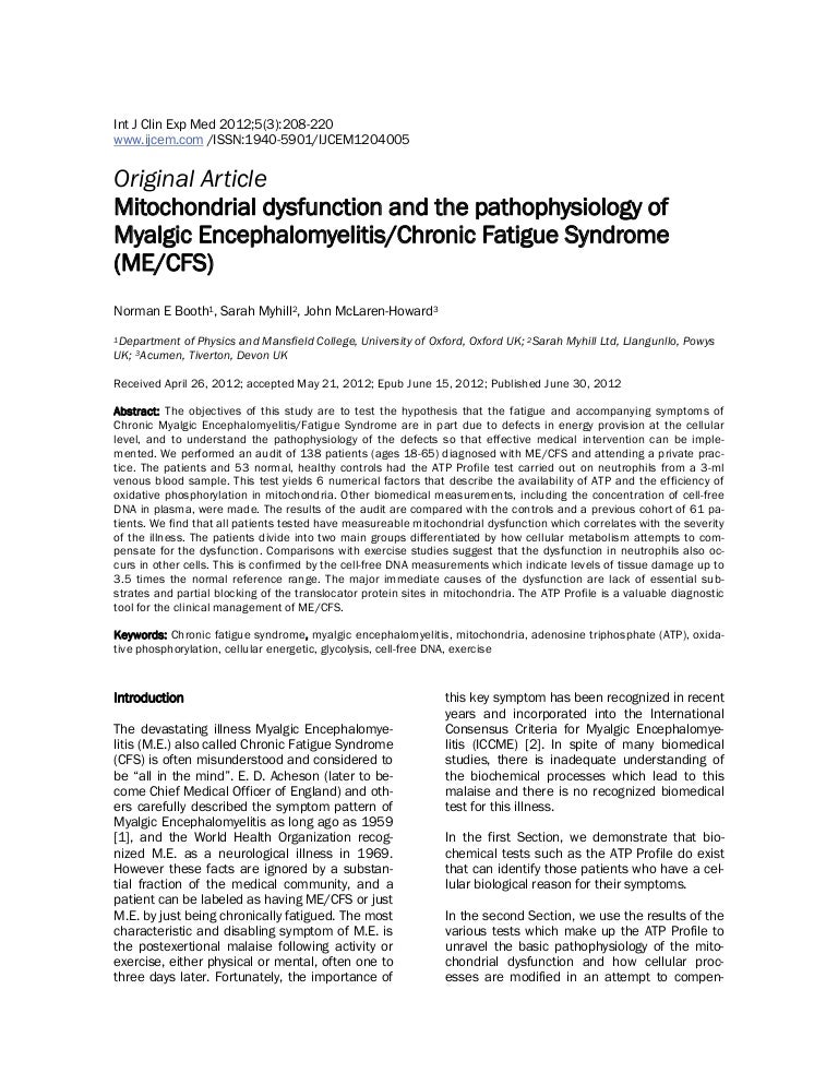 Assessing Cellular Energy Dysfunction In Cfs Me Using A