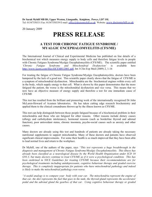 Me Cfs South Australia Inc A Biomedical Test For Me Cfs