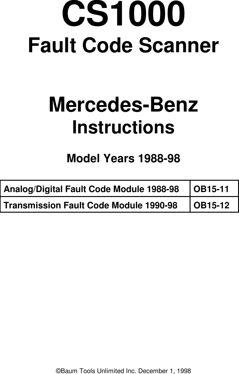 Fault Code Manual For Mercedes Benz Analog Systems Digital Systems